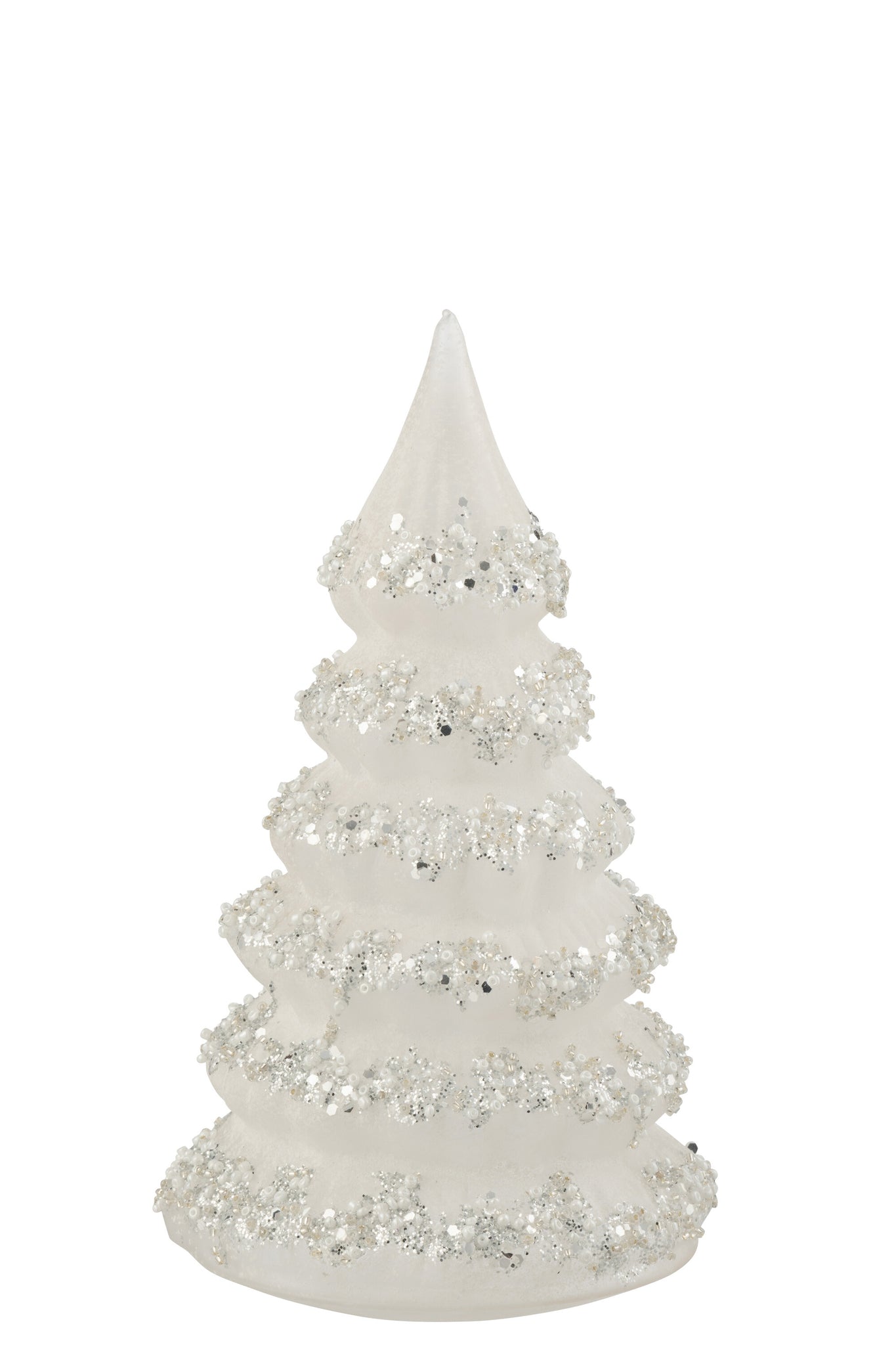 Christmas Tree Lines Glitter+Pearls White/Silver Glass Large