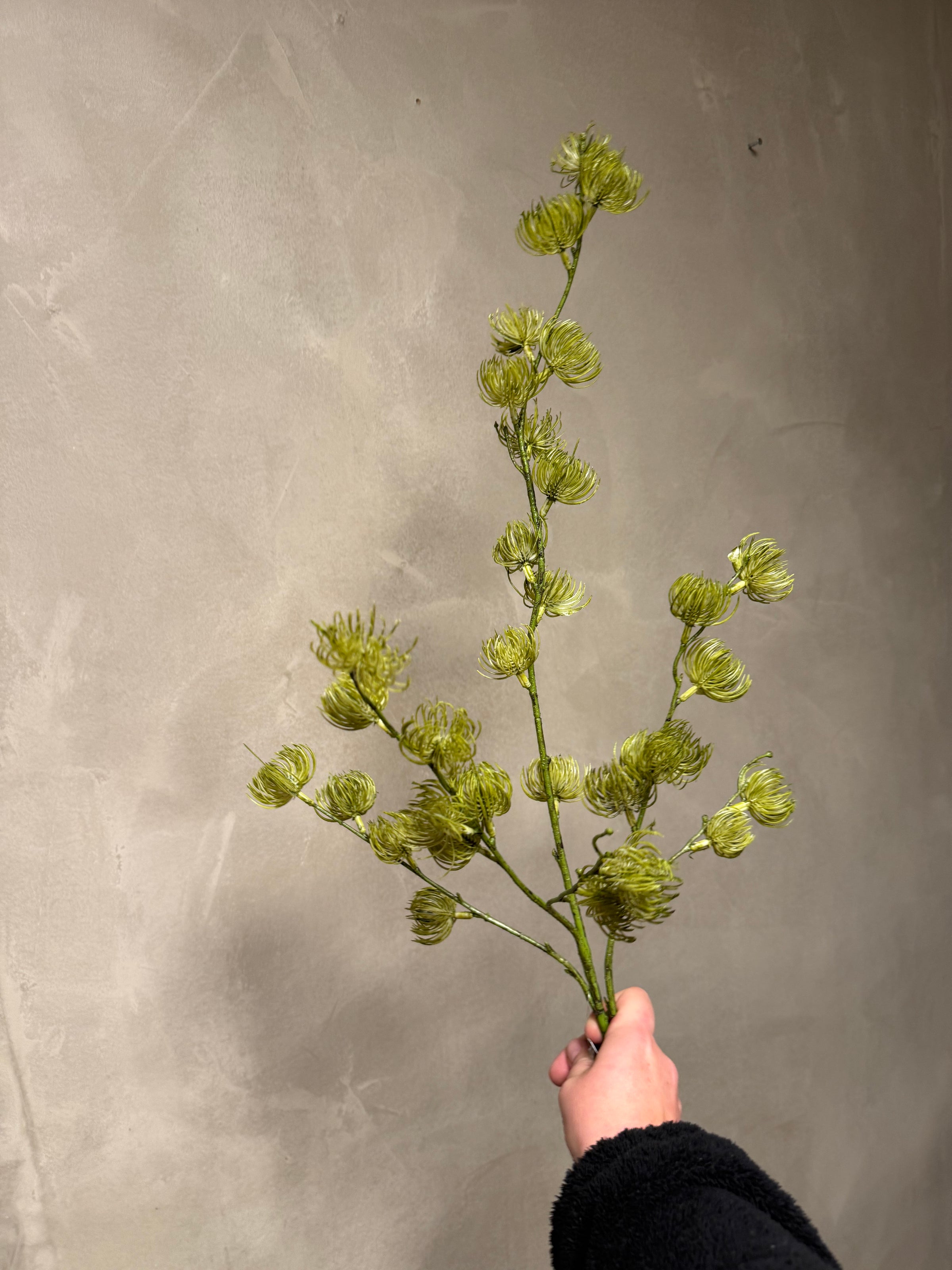 De Kunsttak Clematis groen voegt een frisse, natuurlijke uitstraling toe aan elk interieur. De delicate bladeren en sierlijke ranken geven deze tak een speels en levendig karakter. Ideaal om te combineren in bloemstukken of los in een vaas voor een subtiel groen accent. Dankzij het realistische ontwerp past de tak perfect in zowel moderne als klassieke interieurs. Vervaardigd uit hoogwaardige zijde, blijft deze kunsttak langdurig mooi zonder onderhoud.