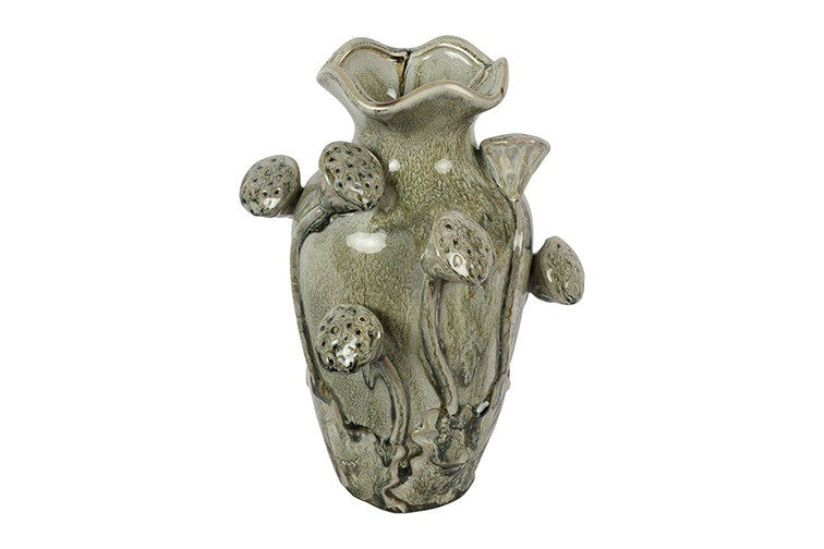 Vaas lang Lotus S groen is een hoge, slanke vaas met subtiele lotusvormige details. De elegante lijnen maken dit een stijlvol accent op de vloer of een lage kast. De groene tint onderstreept de rustige, natuurlijke uitstraling. Lengte = 22 / Breedte = 22 / Hoogte = 31 cm